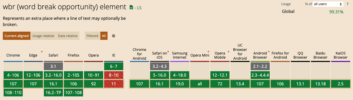 <wbr> 태그는 저도 이번에 블로그를 포스팅하면서 새롭게 알게 되었는데요. 맙소사, 브라우저 지원 현황도 훌륭하네요. 한글 단어를 기준으로 줄바꿈을 해주는 word-break: keep-all CSS 속성과 함께 앞으로 사이드프로젝트 진행시 유용하게 사용하게 될 것 같습니다.